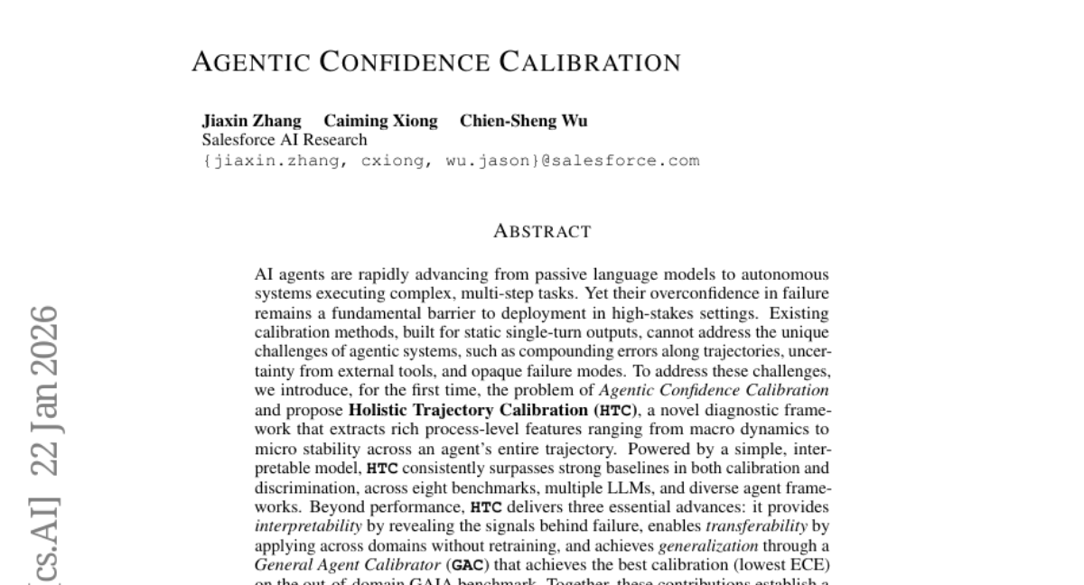 ๐ Keywords: Agentic Confidence Calibration, Holistic Trajectory Calibration, AI agents, Interpretability, Transferability