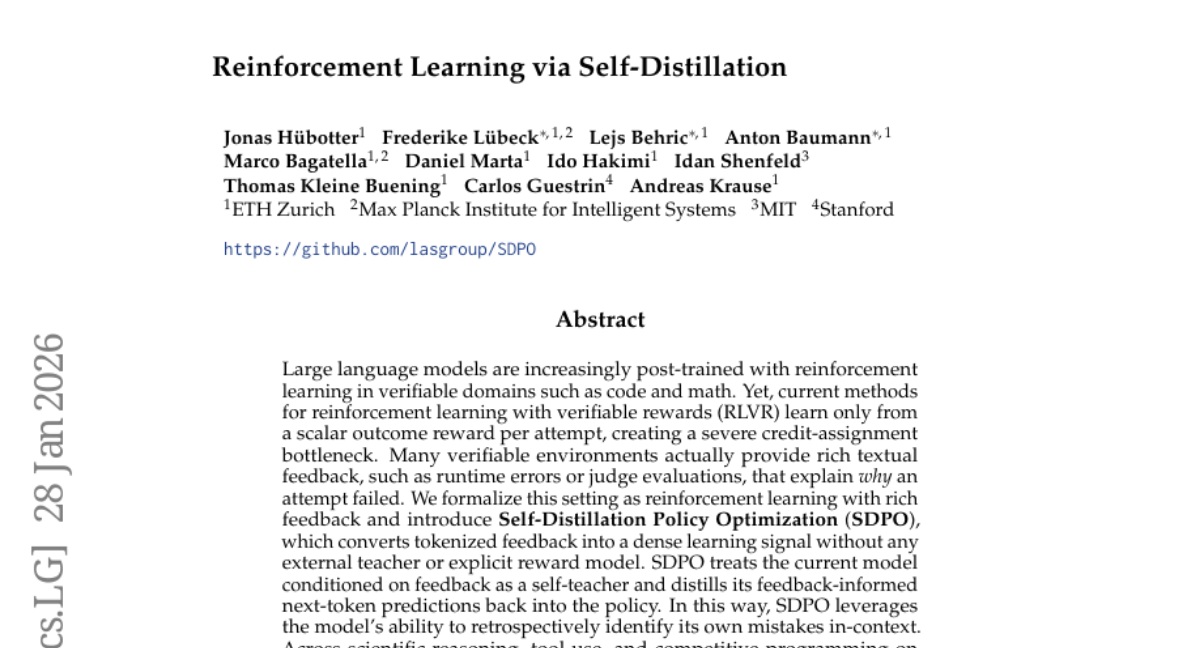 ๐ Keywords: Self-Distillation Policy Optimization, Reinforcement Learning, Rich Feedback, Sample Efficiency, Verifiable Rewards