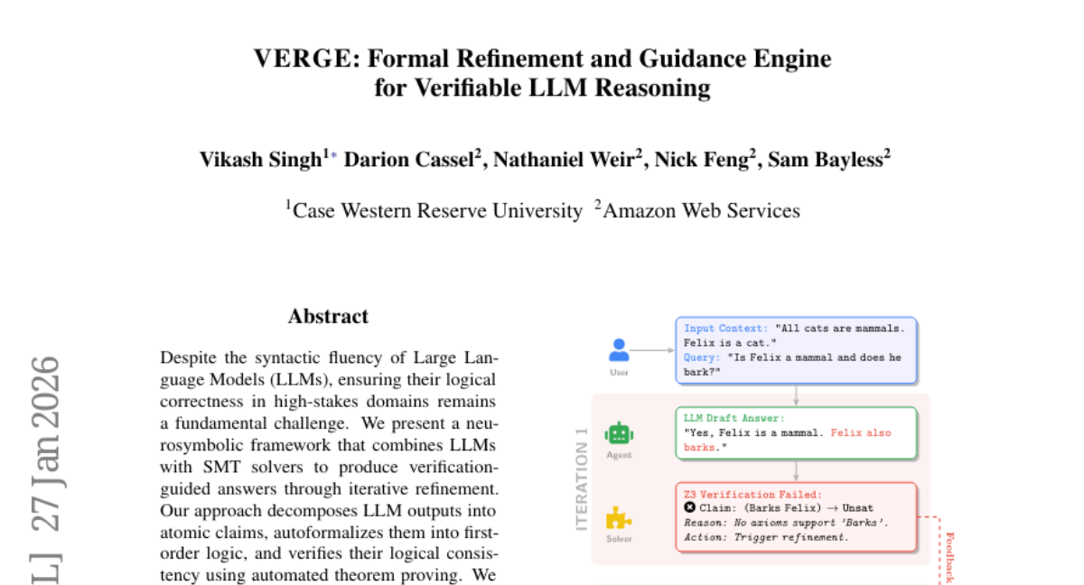 ๐ Keywords: neurosymbolic framework, Large Language Models, SMT solvers, logical correctness, verification-guided answers