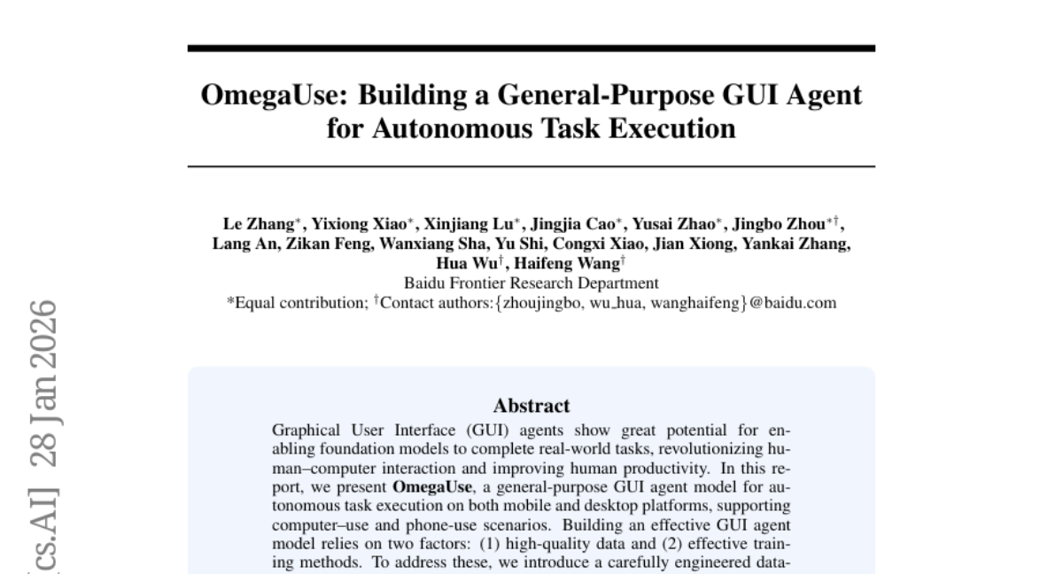 – The study aims to develop OmegaUse, a general-purpose GUI agent model to enhance autonomous task execution on mobile and desktop platforms.