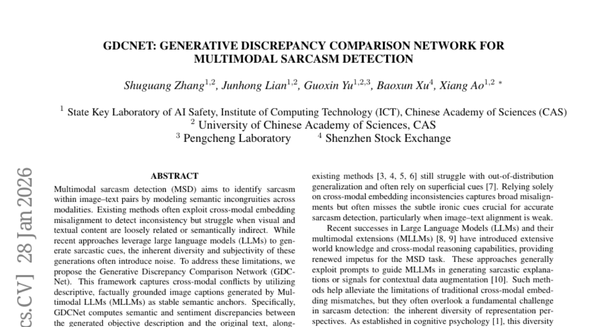 ๐ Keywords: Multimodal sarcasm detection, semantic incongruities, large language models, Generative Discrepancy Comparison Network, Multimodal LLMs