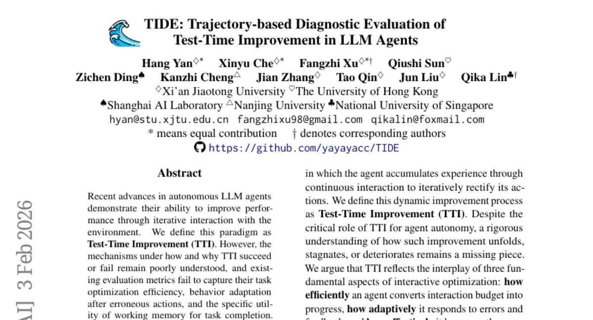– Introduction of the Test-time Improvement Diagnostic Evaluation (TIDE), a framework that analyzes TTI through three dimensions: temporal dynamics of task completion, constraints by recursive behaviors, and burdens of accumulated memory.