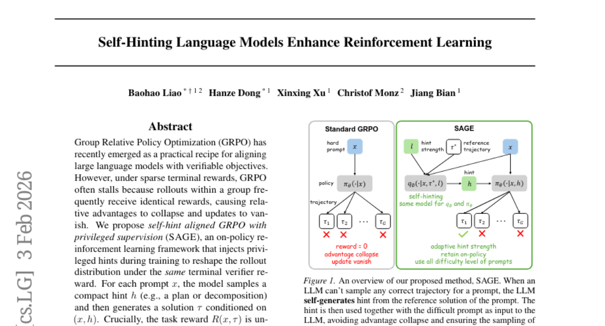 ๐ Keywords: self-hint, GRPO, reinforcement learning, sparse rewards, large language models