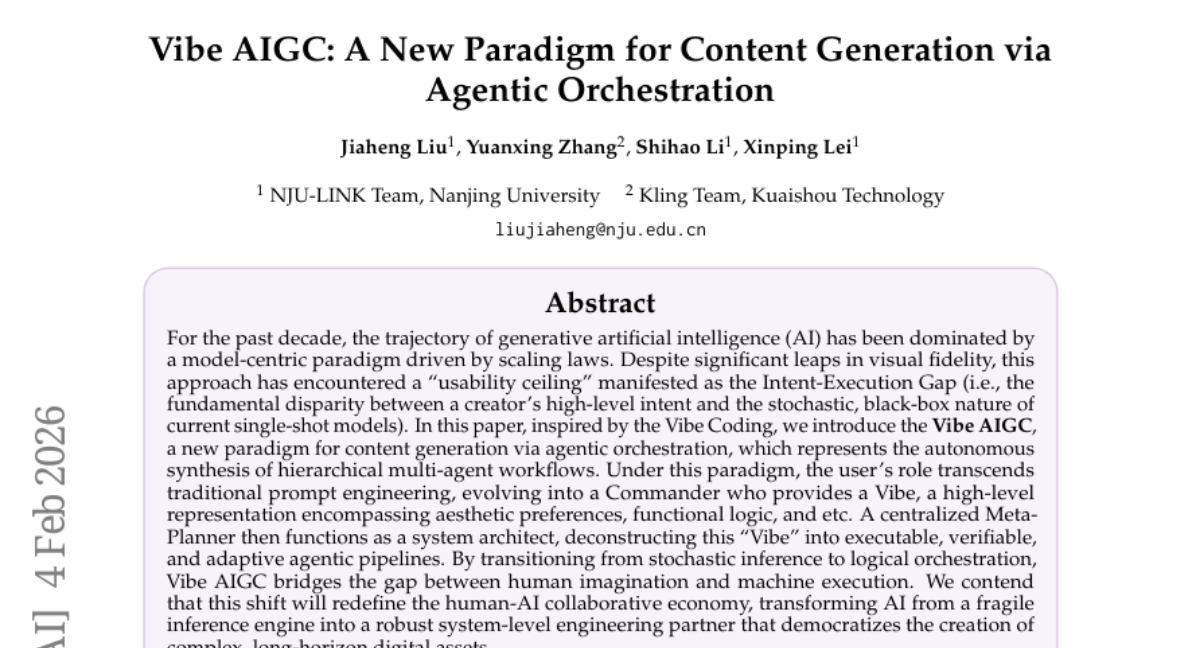 – Introduce a new generative AI paradigm, Vibe AIGC, which aims to bridge the gap between human intent and machine execution by using agentic orchestration.
