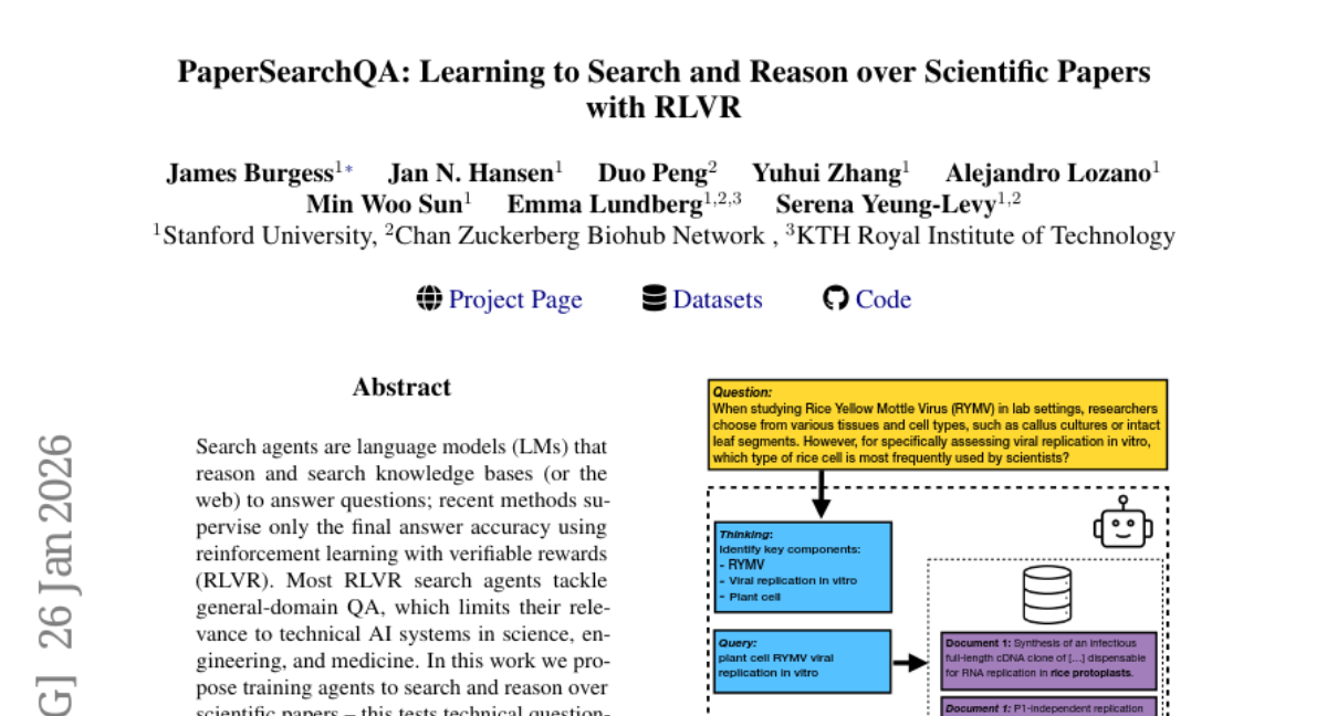 ๐ Keywords: Search agents, language models, reinforcement learning with verifiable rewards, scientific papers, PaperSearchQA