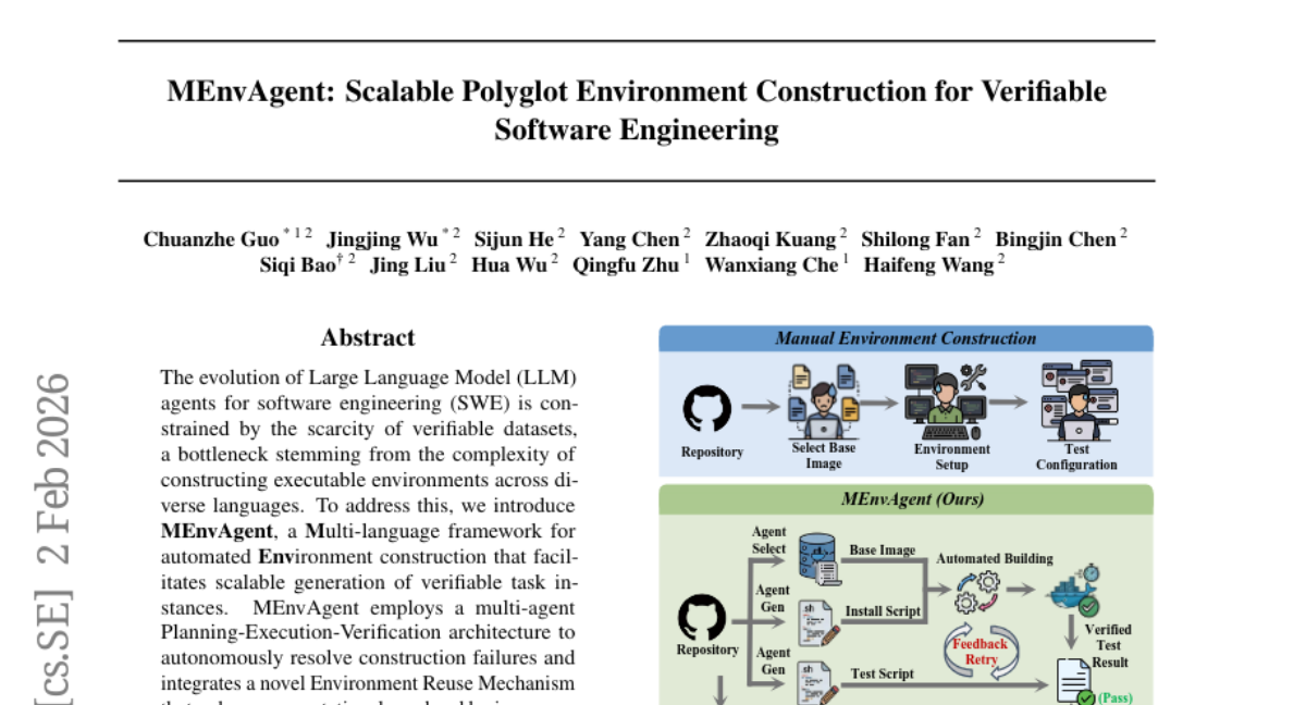 – To introduce MEnvAgent, a multi-language framework designed to automate the construction of scalable and verifiable environments for software engineering tasks.