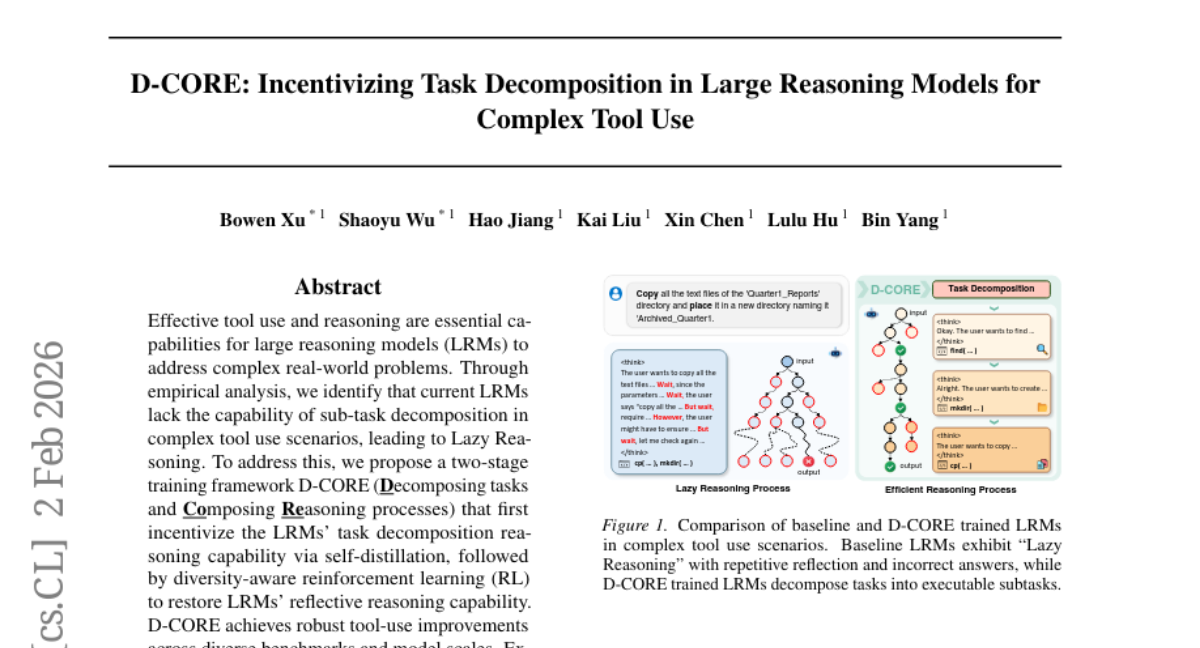 39. D-CORE: Incentivizing Task Decomposition in Large Reasoning Models for Complex Tool Use