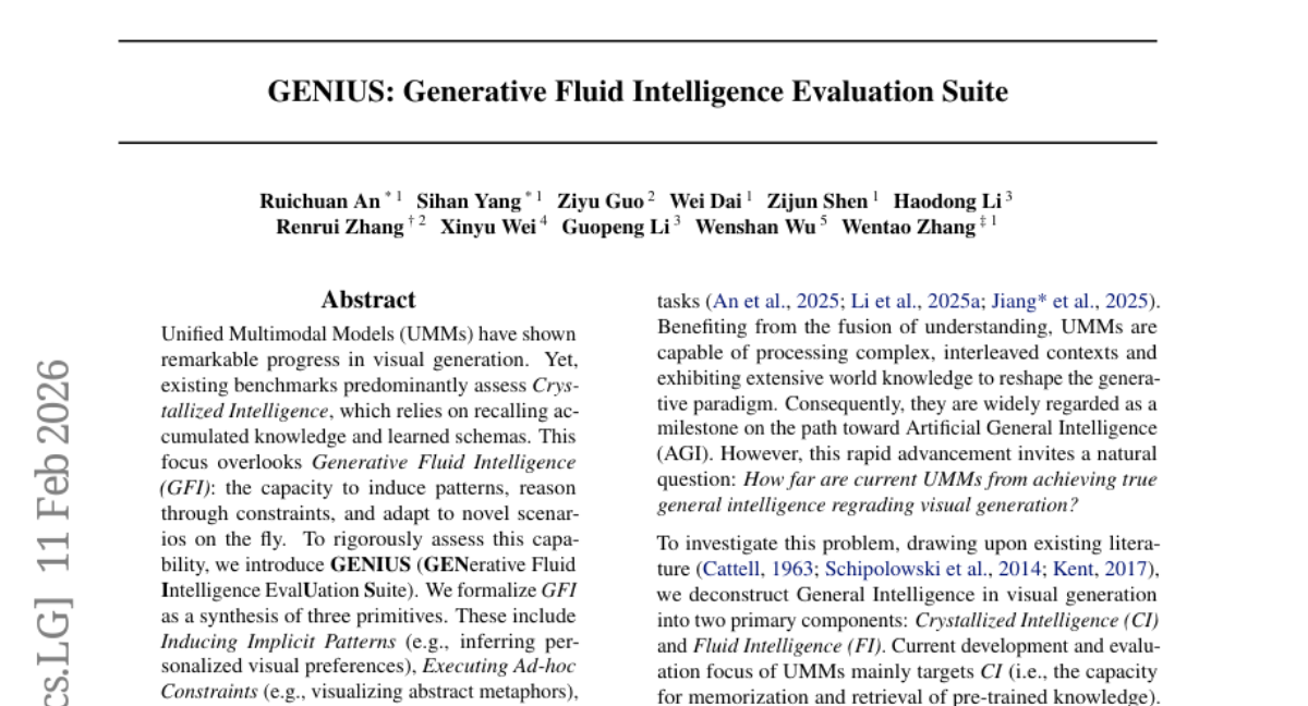 – The paper aims to evaluate Unified Multimodal Models regarding their Generative Fluid Intelligence, focusing on pattern induction, constraint reasoning, and contextual adaptation capabilities.