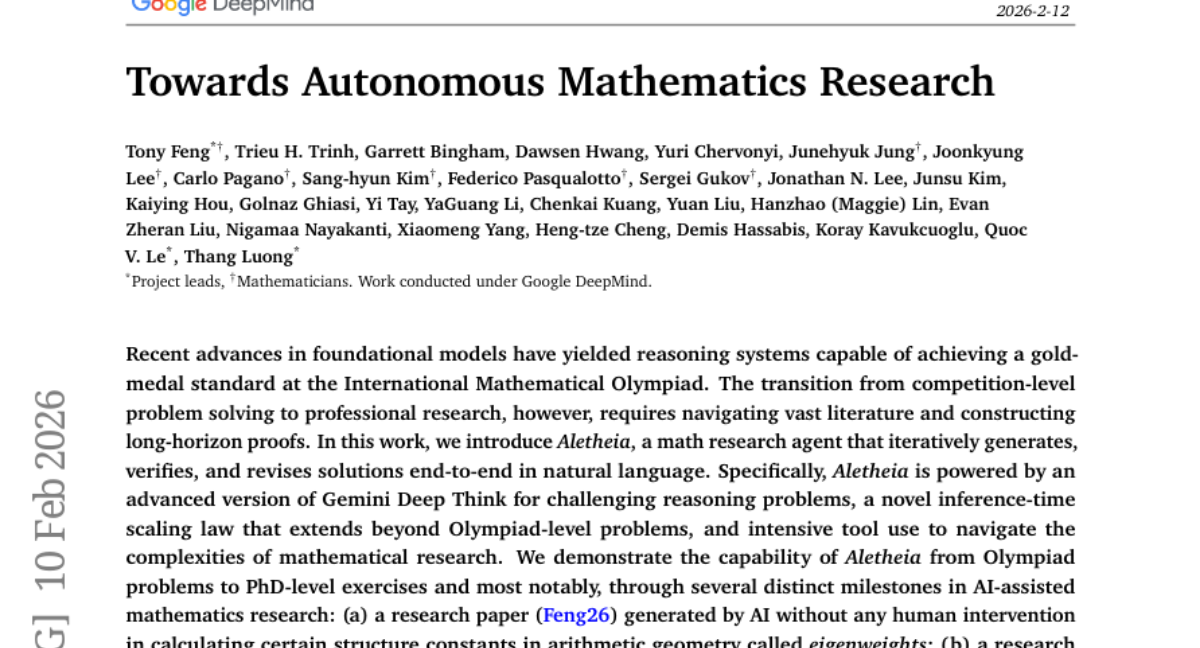 – Introduce Aletheia, a math research agent capable of generating and verifying solutions in natural language from competition-level to PhD-level exercises, contributing significantly to AI-assisted mathematical research.