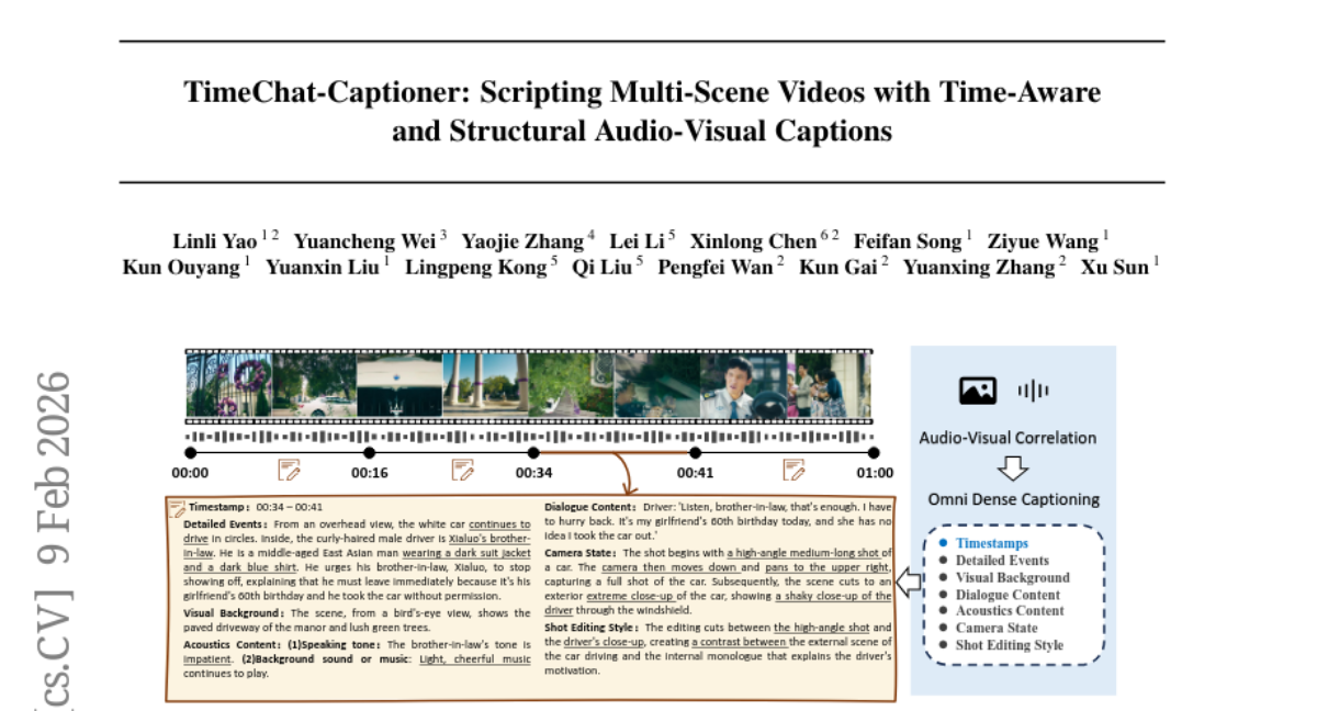 ๐ Keywords: Omni Dense Captioning, six-dimensional structural schema, AI-generated summary, TimeChat-Captioner-7B, temporal grounding