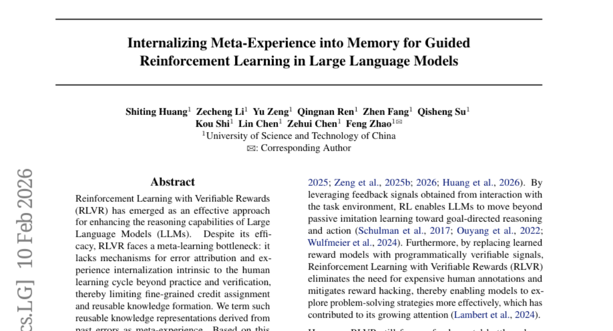๐ Keywords: Meta-Experience, Large Language Models, Reinforcement Learning, self-verification, parametric memory