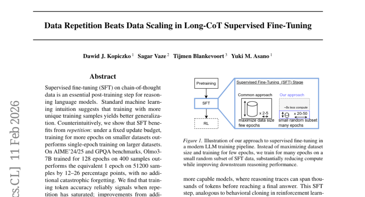 39. Data Repetition Beats Data Scaling in Long-CoT Supervised Fine-Tuning