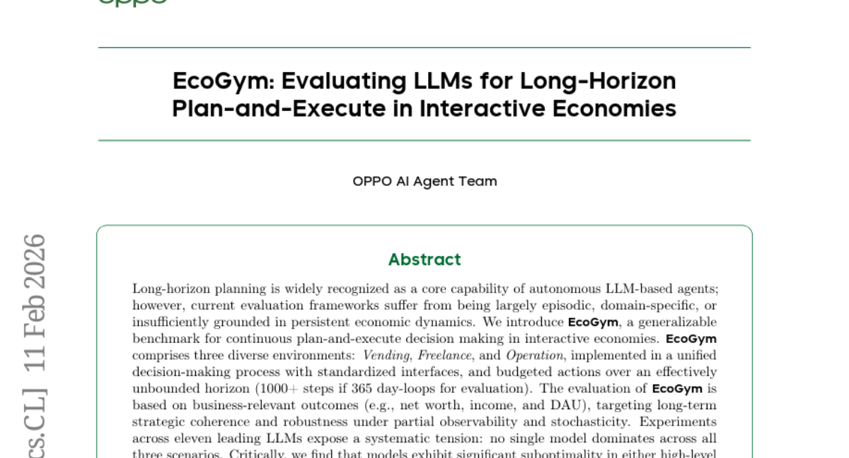 – EcoGym is introduced as a generalizable benchmark for evaluating the long-term planning capabilities of LLM-based agents in interactive economic environments.