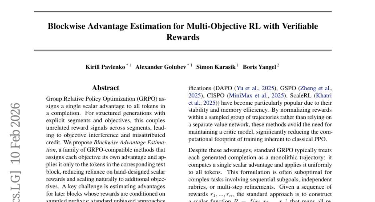 36. Blockwise Advantage Estimation for Multi-Objective RL with Verifiable Rewards