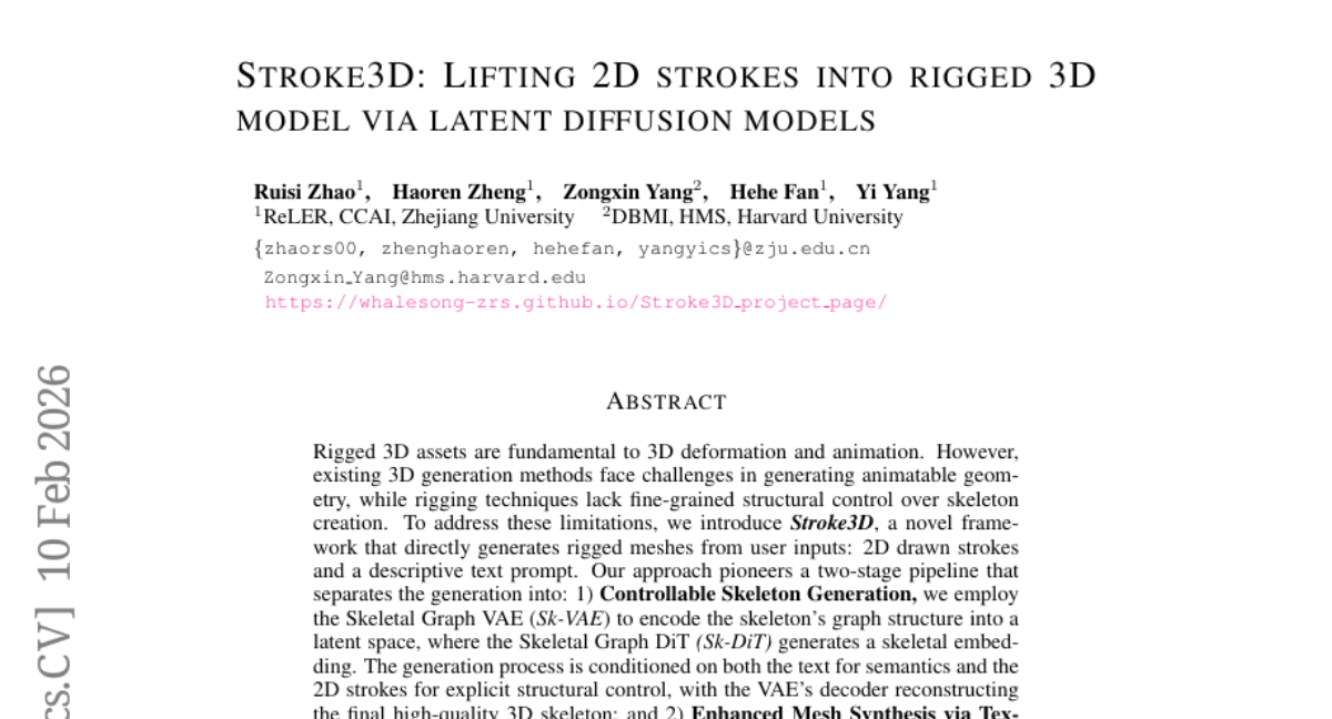 – Introduction of Stroke3D, a framework that generates rigged 3D meshes from 2D strokes and text prompts.