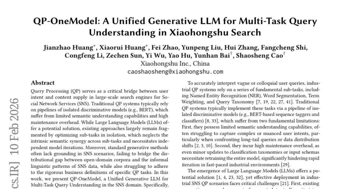 – To develop QP-OneModel, a Unified Generative LLM aimed at enhancing semantic understanding and downstream task performance in Social Network Service (SNS) query processing.