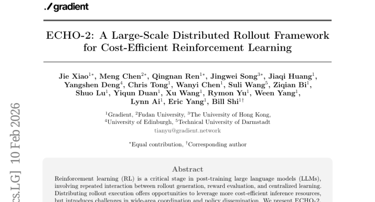 – ECHO-2 enhances cost efficiency in the post-training phase of LLMs and maintains reinforcement learning rewards comparable to strong baselines, demonstrated through experiments on 4B and 8B models in real wide-area bandwidth scenarios.