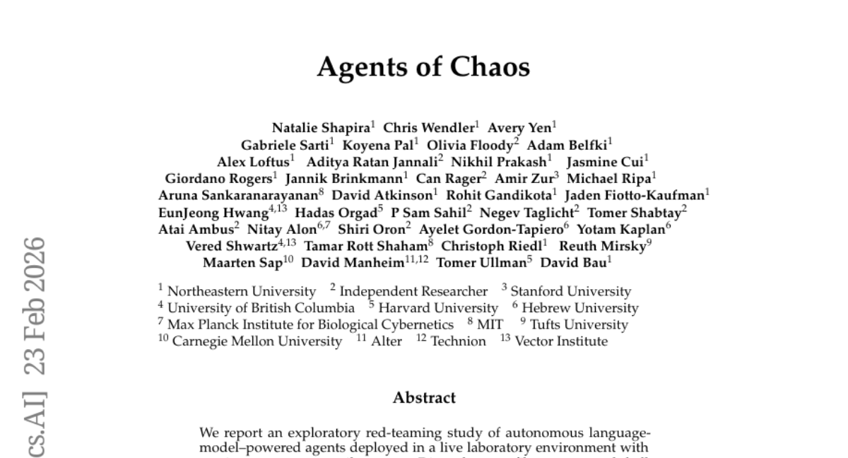 – A two-week exploratory red-teaming study involving twenty AI researchers interacting with the agents under benign and adversarial conditions, documenting failures related to autonomy and communication.