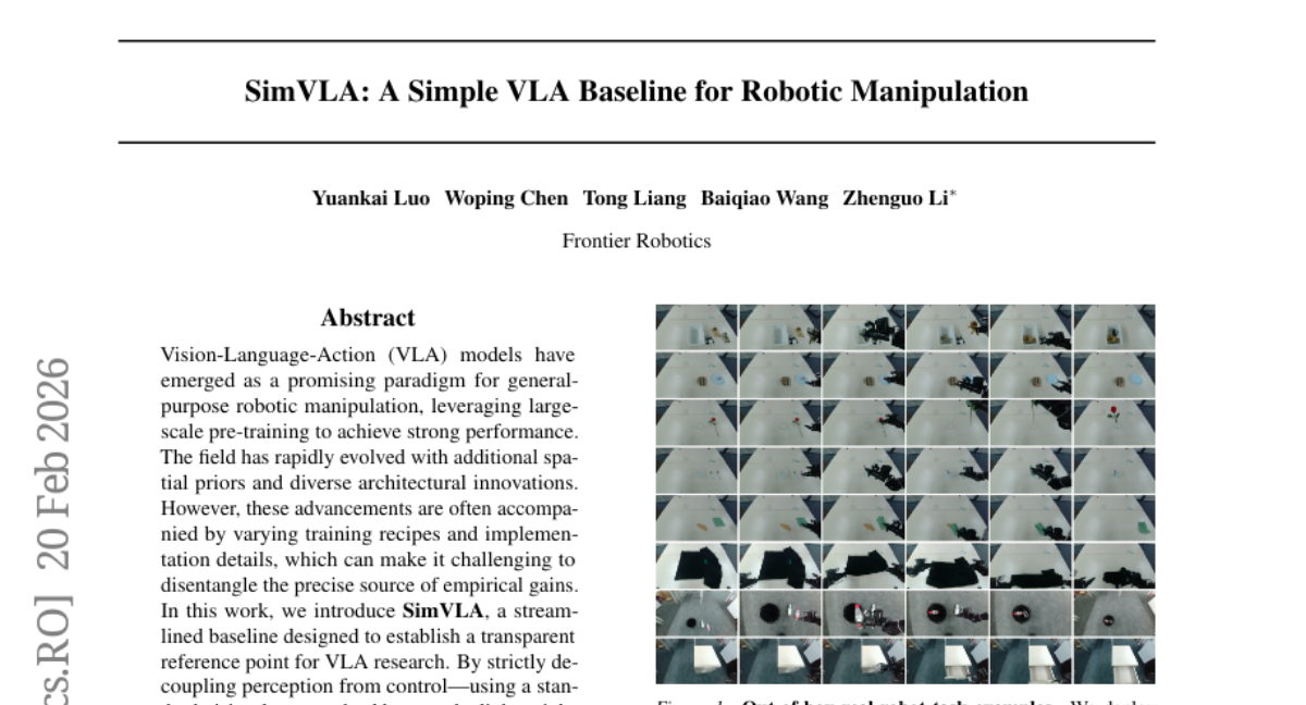 – The study introduces SimVLA as a simplified baseline for Vision-Language-Action models to achieve high performance with fewer parameters and allow for clearer evaluation of architectural improvements.
