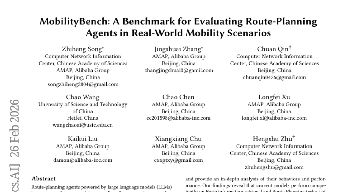๐ Keywords: Large Language Models, Route Planning Agents, MobilityBench, Real-World Scenarios, AI Native