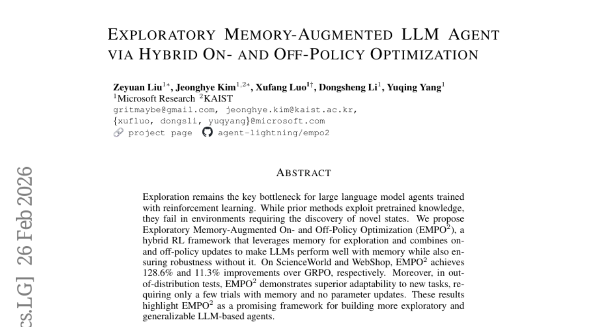 – The study aims to enhance exploration in large language model agents using a hybrid reinforcement learning framework called EMPOยฒ, which integrates memory mechanisms with on- and off-policy updates.