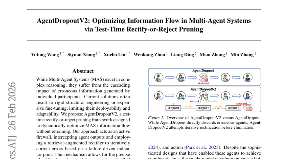 4. AgentDropoutV2: Optimizing Information Flow in Multi-Agent Systems via Test-Time Rectify-or-Reject Pruning