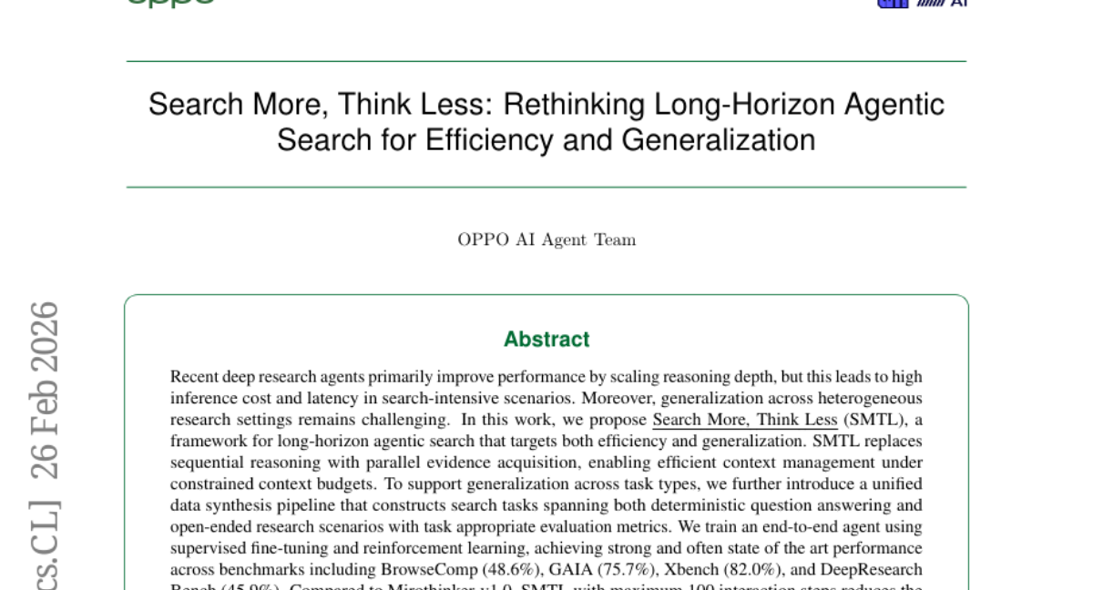 – Introduce the SMTL (Search More, Think Less) framework to enhance efficiency and generalization in long-horizon agentic search.