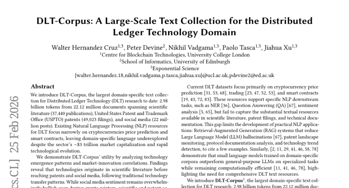 – The objective is to introduce the DLT-Corpus, the largest domain-specific text collection for Distributed Ledger Technology research.