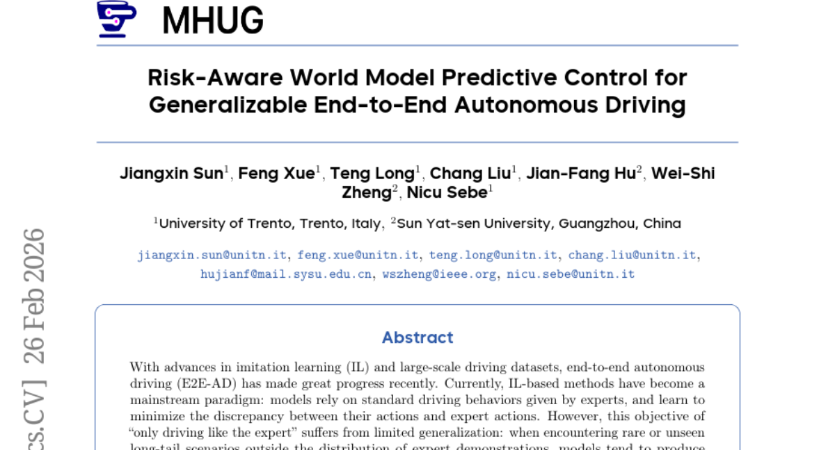 ๐ Keywords: Risk-aware, World Model, Predictive Control, Generalization, End-to-end autonomous driving