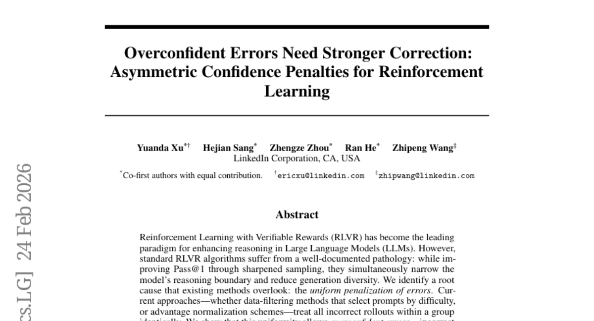 13. Overconfident Errors Need Stronger Correction: Asymmetric Confidence Penalties for Reinforcement Learning