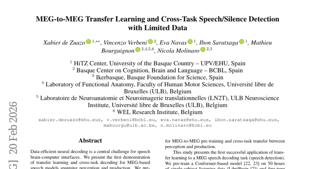 ๐ Keywords: Transfer learning, MEG-based speech models, Conformer-based model, cross-task decoding, pre-training