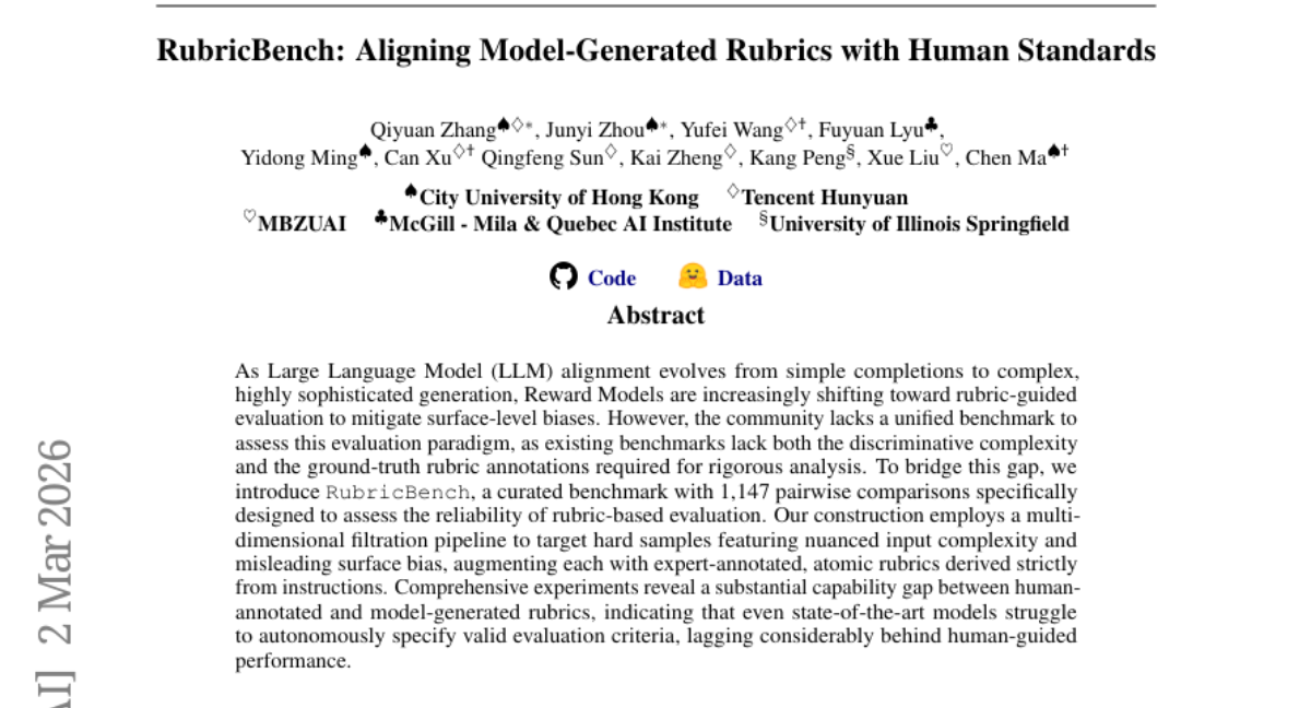41. RubricBench: Aligning Model-Generated Rubrics with Human Standards
