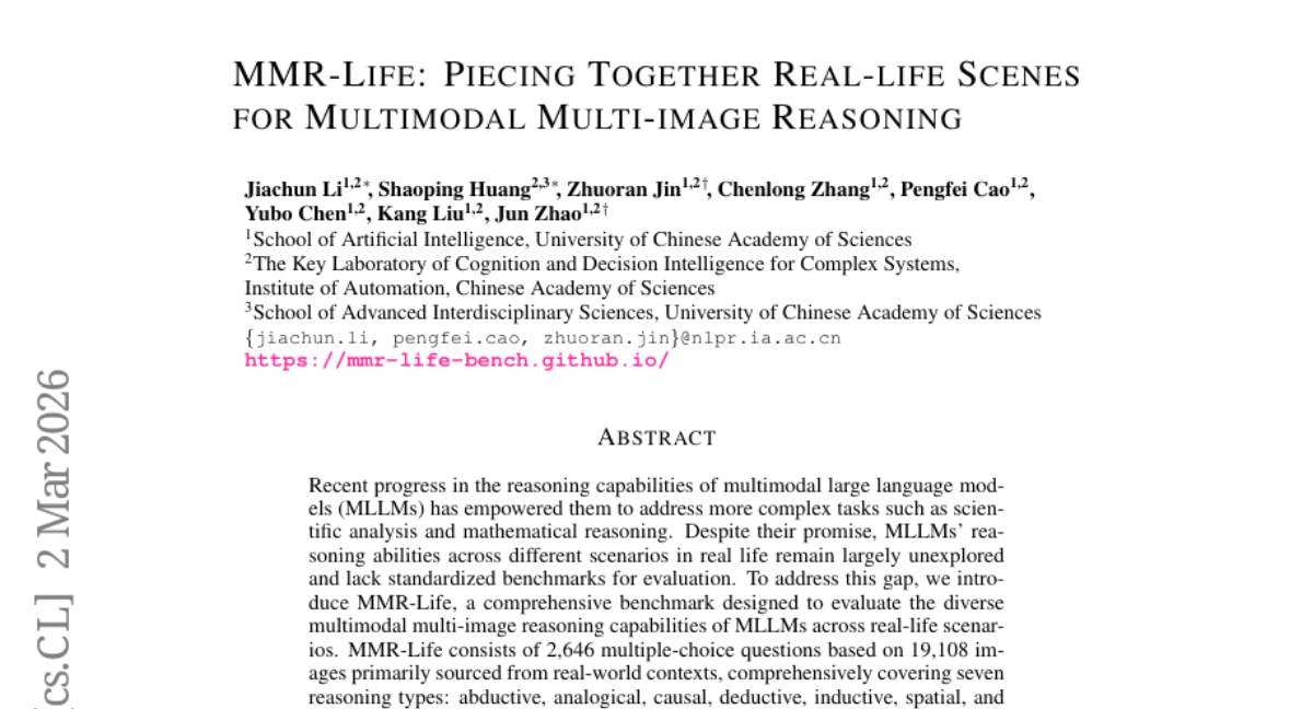 – MMR-Life consists of 2,646 multiple-choice questions created from 19,108 images, encompassing seven reasoning types such as abductive, deductive, and spatial reasoning, without relying on domain-specific expertise.