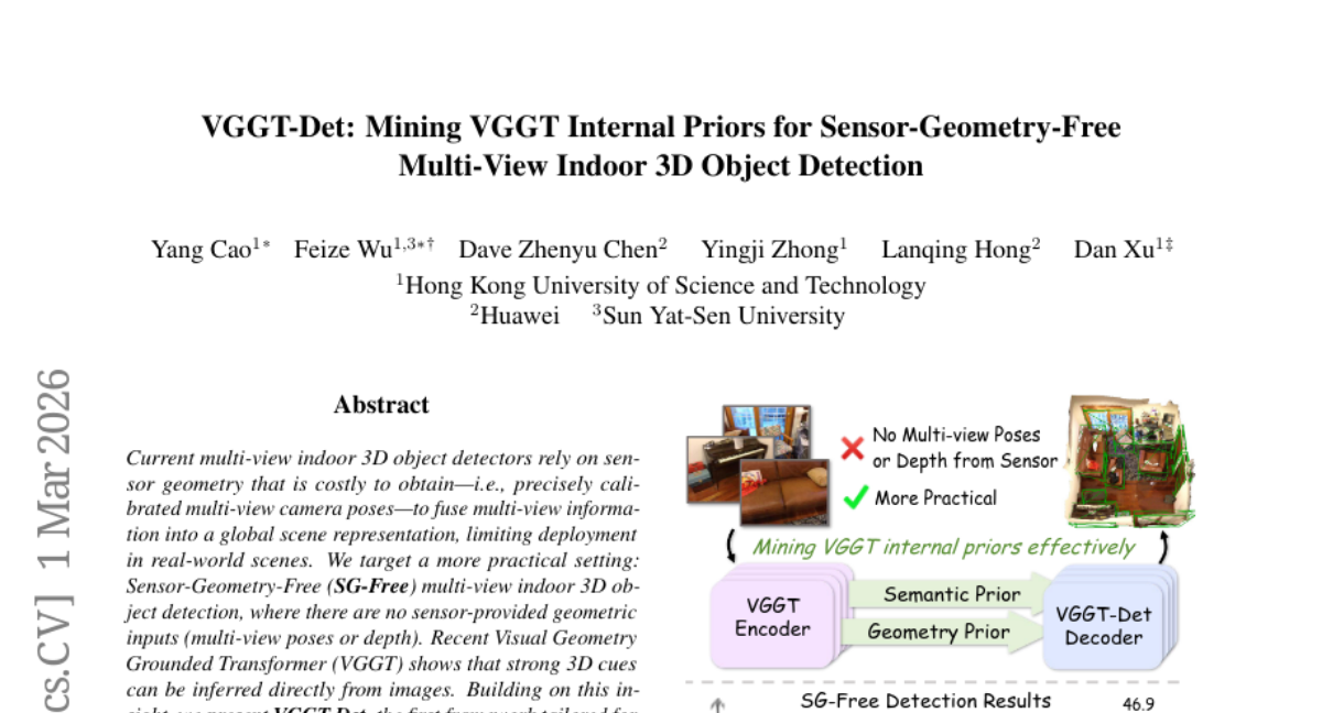 – Develop a Sensor-Geometry-Free multi-view indoor 3D object detection framework (VGGT-Det) that doesn’t rely on sensor geometry inputs.