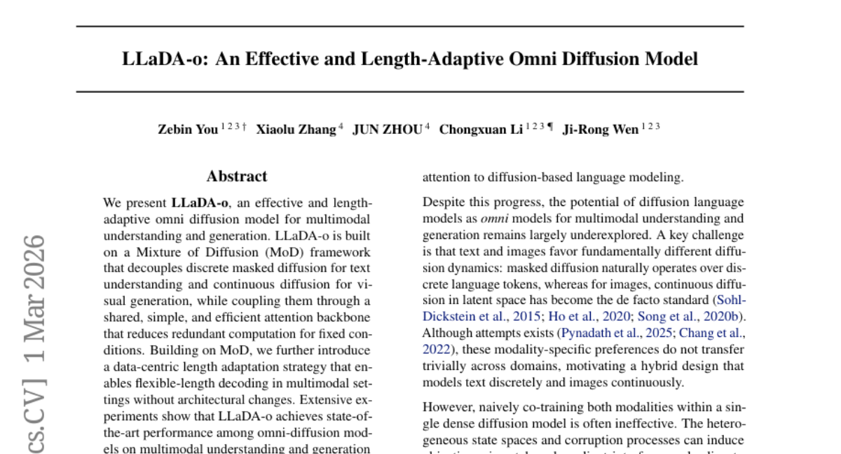 – The paper introduces LLaDA-o, an Omni Diffusion Model, designed to enhance multimodal understanding and visual generation.