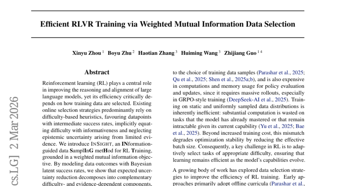 36. Efficient RLVR Training via Weighted Mutual Information Data Selection