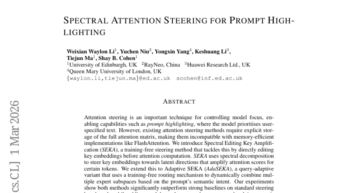 ๐ Keywords: Spectral Editing Key Amplification, Adaptive SEKA, attention steering, key embeddings, memory-efficient