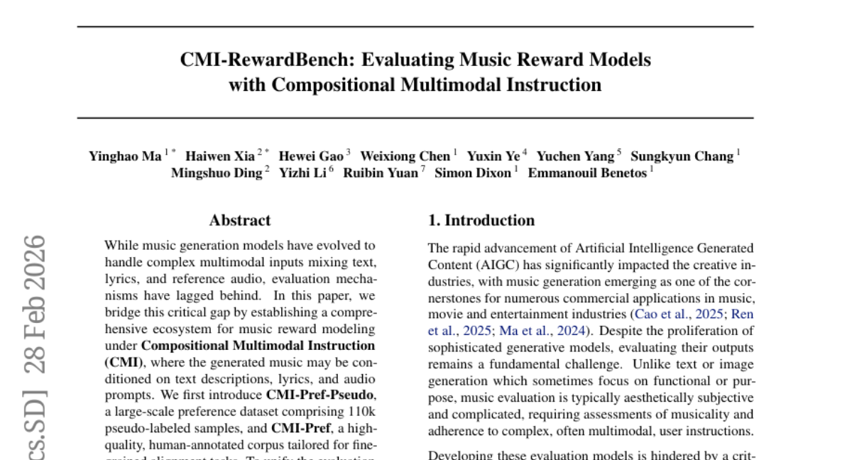 ๐ Keywords: Compositional Multimodal Instruction, music reward modeling, unified benchmark, parameter-efficient
