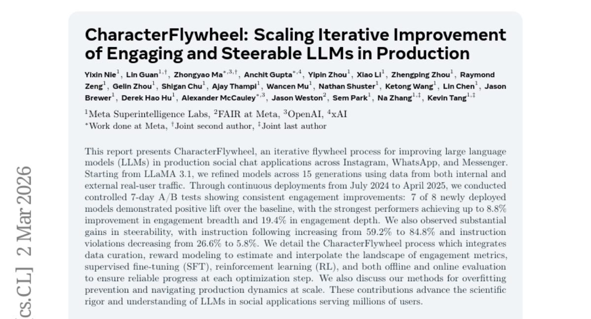 ๐ Keywords: CharacterFlywheel, large language models, social chat applications, engagement improvement, instruction following