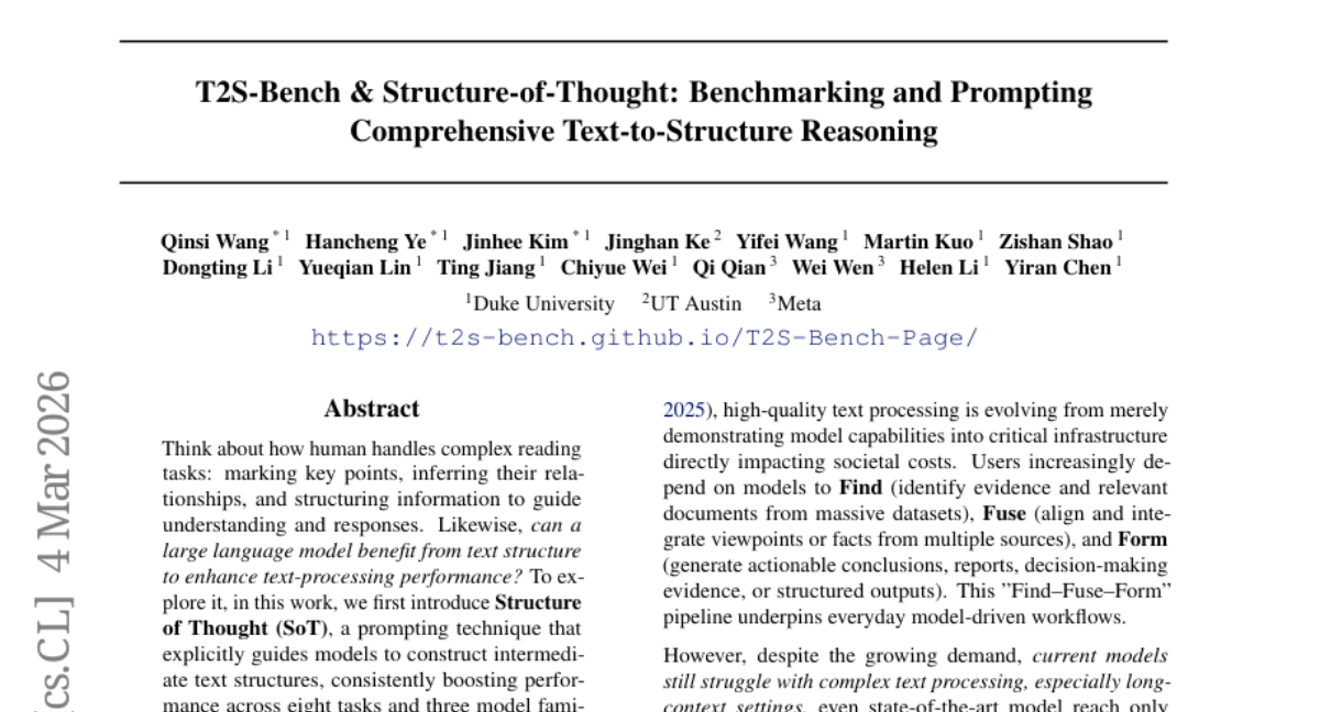 ๐ Keywords: Structure of Thought, T2S-Bench, text-to-structure capabilities, multi-hop reasoning, language model performance