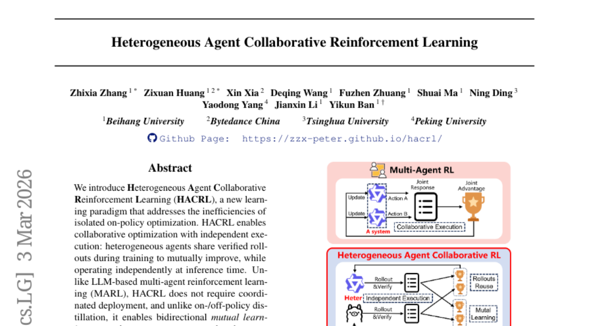 ๐ Keywords: HACRL, Heterogeneous Agents, Rollout Sharing, Sample Utilization, Reinforcement Learning
