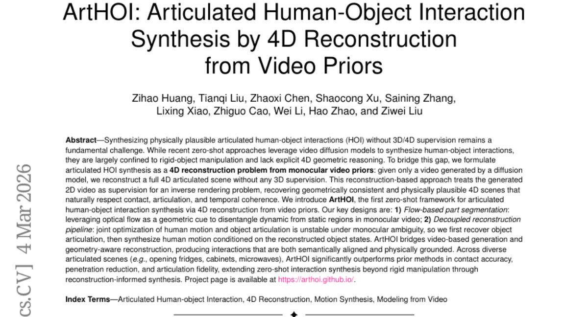 ๐ Keywords: Articulated human-object interactions, 4D reconstruction, Monocular video, Zero-shot framework, Optical flow