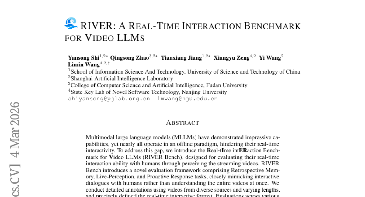 – To introduce the RIVER Bench, which evaluates online video comprehension capabilities in real-time interaction settings.