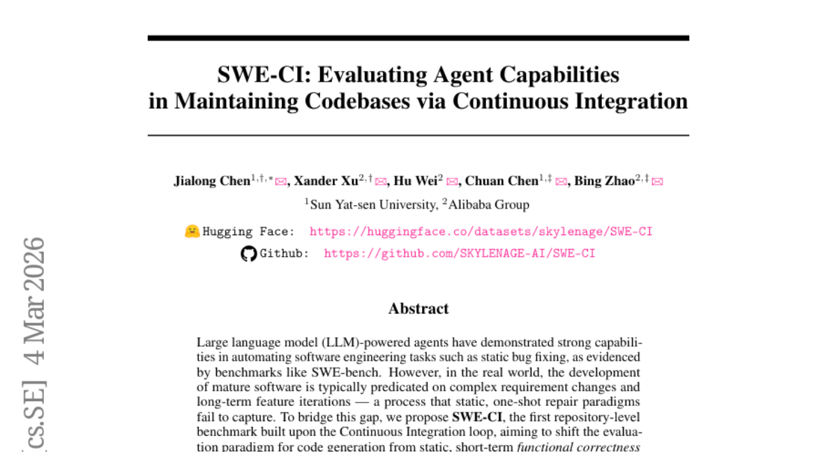 – The research introduces SWE-CI, the first repository-level benchmark designed to evaluate the ability of code generation agents to maintain code quality during long-term software evolution cycles.