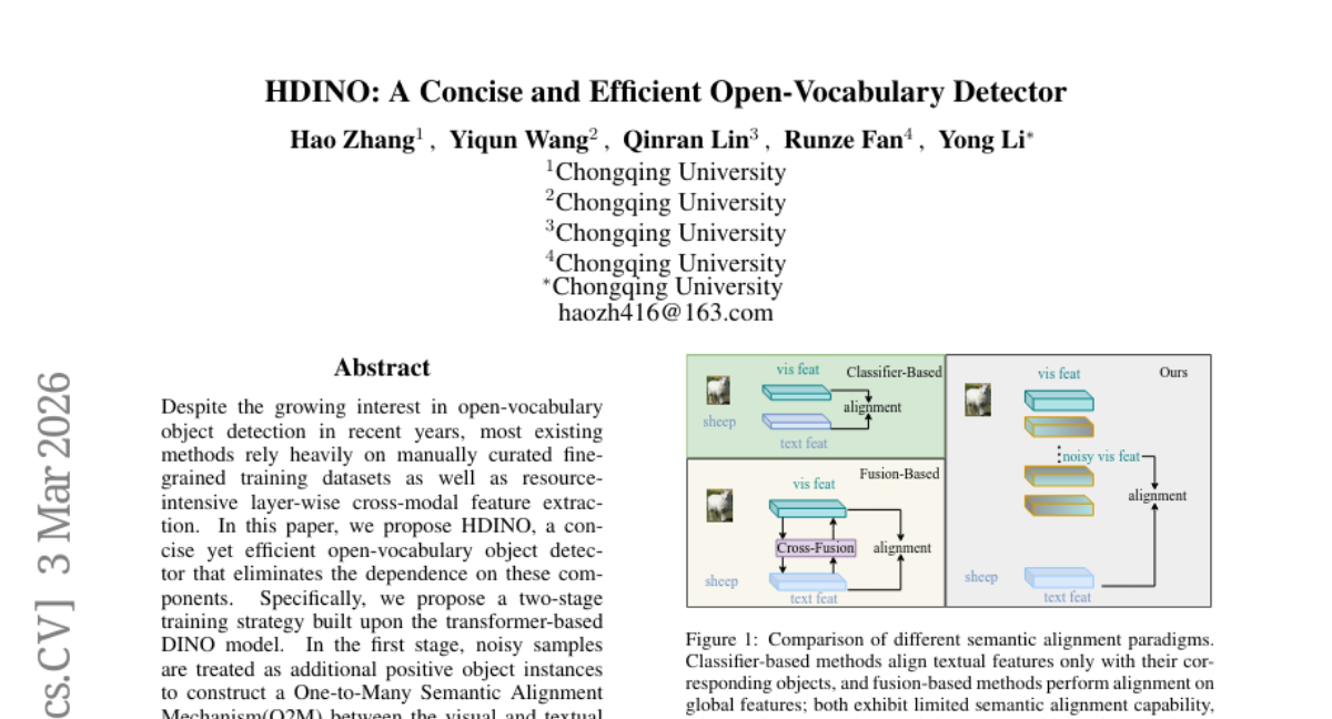– The paper aims to develop an efficient open-vocabulary object detector, HDINO, that does not rely on manual data curation or resource-intensive cross-modal feature extraction.