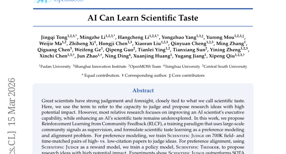 ๐ Keywords: Scientific Taste, Reinforcement Learning, Community Feedback, AI Scientists