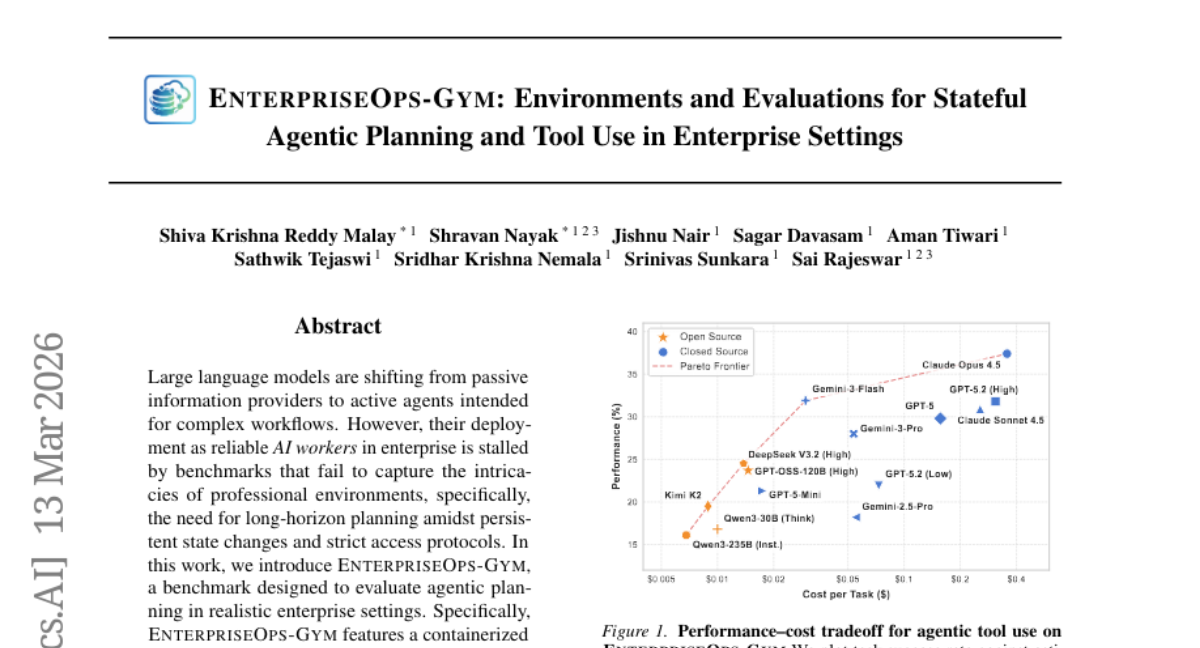 ๐ Keywords: EnterpriseOps-Gym, agentic planning, strategic reasoning, AI workers, professional workflows