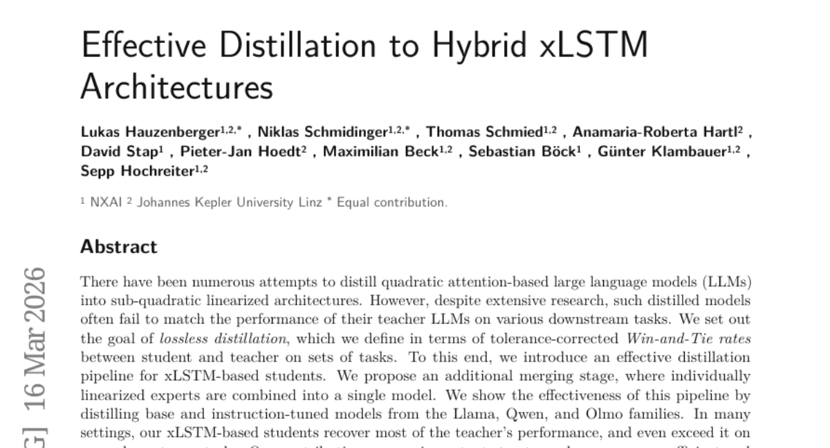 ๐ Keywords: lossless distillation, xLSTM, quadratic attention, transformer-based LLMs