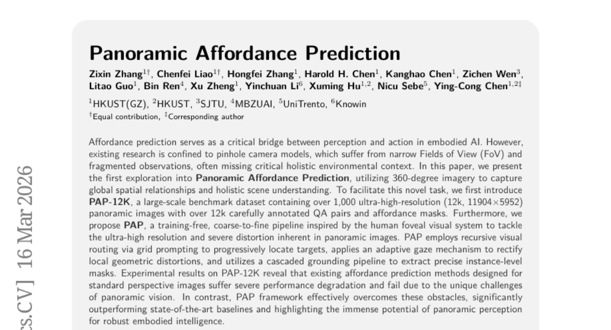 ๐ Keywords: Panoramic Affordance Prediction, Embodied AI, PAP-12K, 360-degree imagery, Coarse-to-fine pipeline