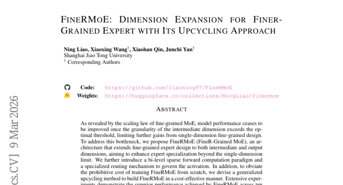 – Devises a generalized upcycling method for cost-effective construction of FineRMoE, reducing training costs.